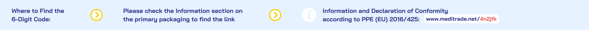 For all items that are used as personal protective equipment (PPE) according to Regulation (EU) 206/425, an individual link can be found on the primary packaging (inner box).