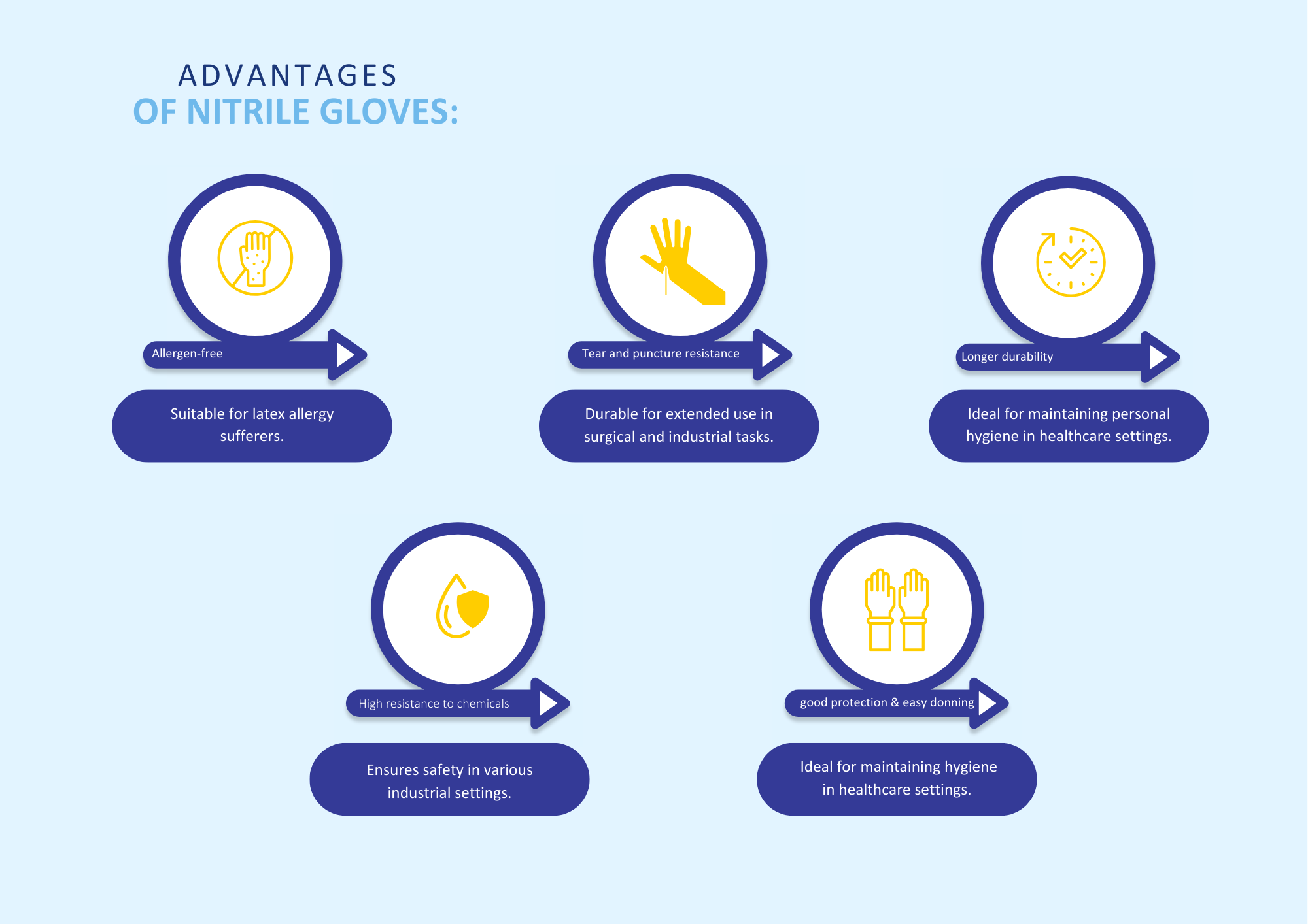 Consider the specific requirements of your application, whether it’s in healthcare, industrial settings, or personal care. Nitrile gloves provide durability and chemical resistance, vinyl gloves offer cost-effective solutions, and latex gloves cater to flexibility and grip.